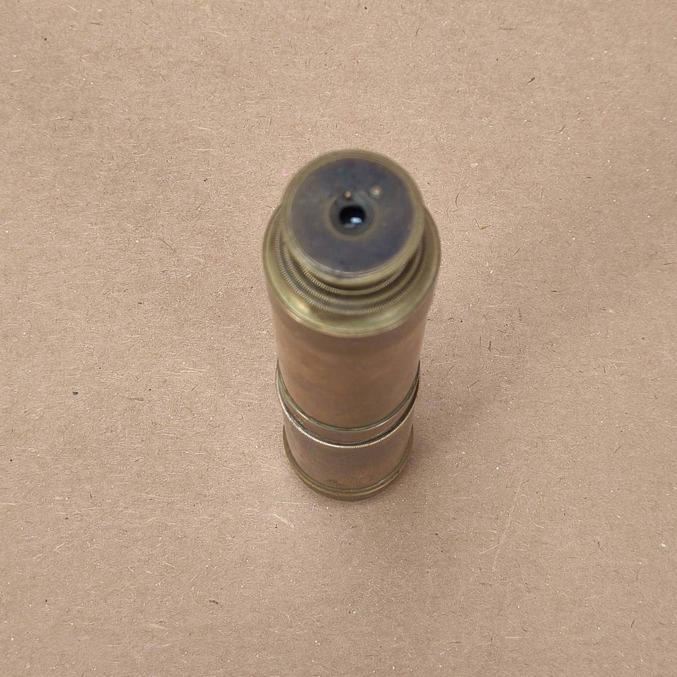 Optics are present and functional with no damage. Image clarity is reasonably good for the age. Internal lenses have been cleaned where accessible; however, some old age-related marks remain visible around the lens edge, primarily within the first draw tube. These do not affect image quality or viewing performance.