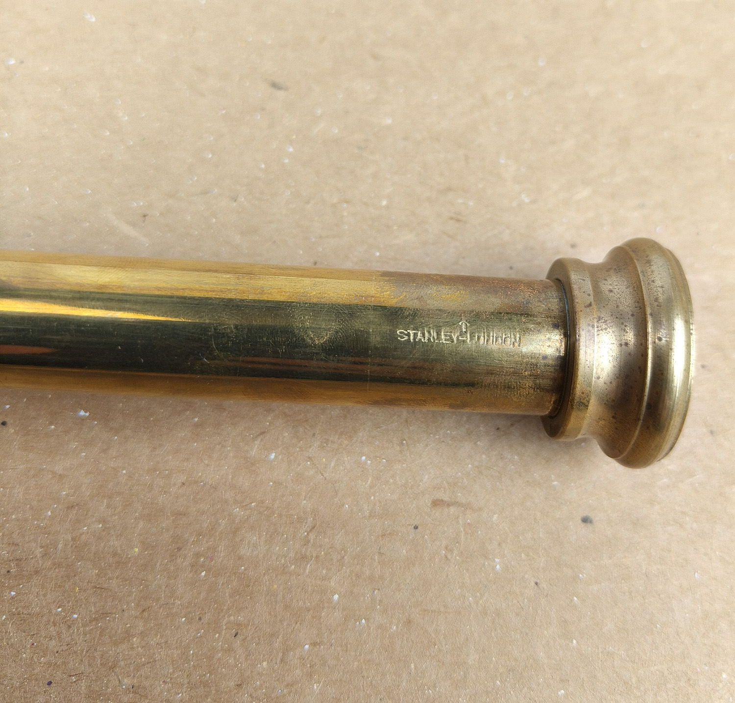 Offered here is an original antique 3-draw brass telescope marked “Stanley London” with the maker’s arrow stamp, a well-known hallmark associated with quality British optical and nautical instruments.
