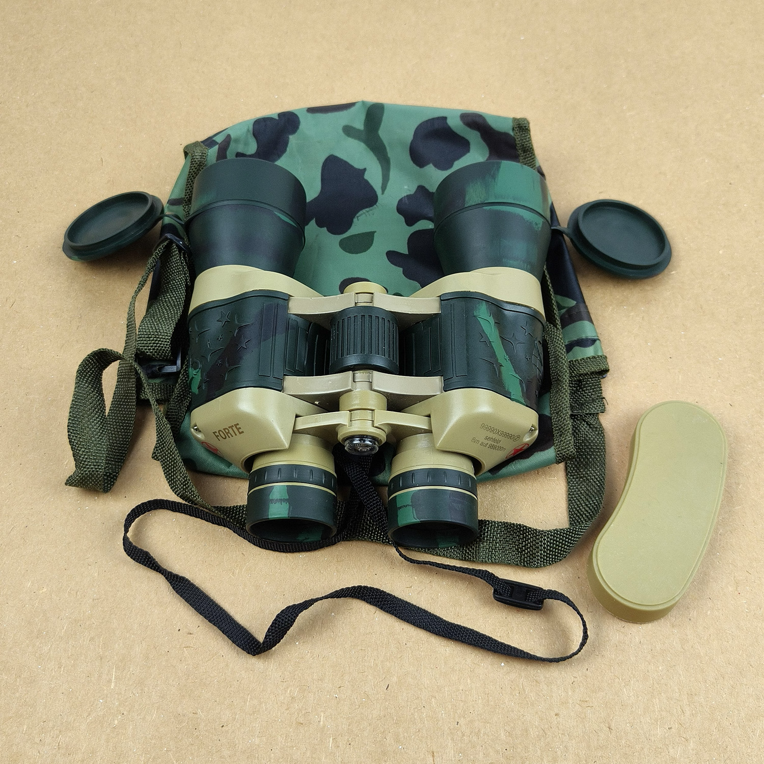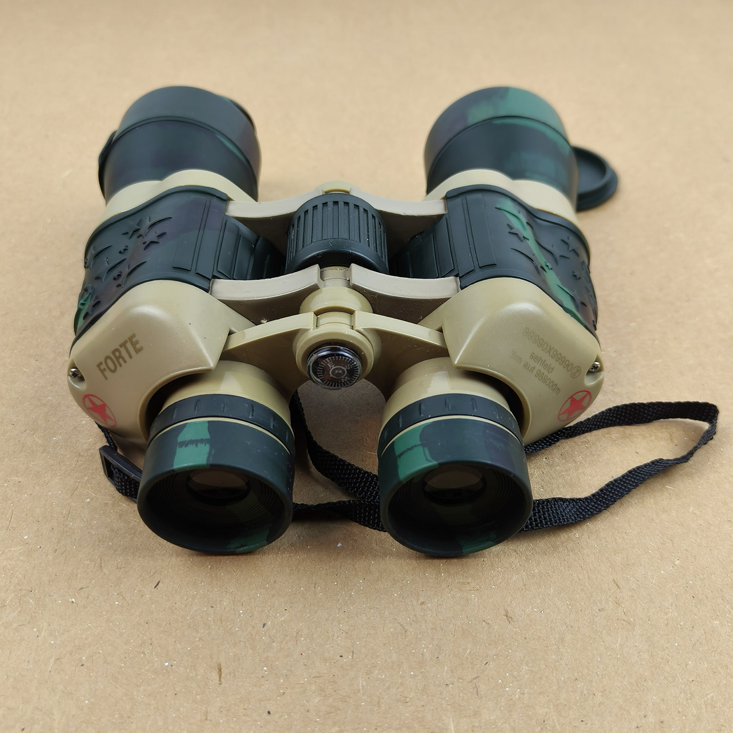 The binoculars are marked with novelty-style specifications on the prism housing. Suitable for casual outdoor use, camping, hiking, fancy dress, or children’s adventure play.
