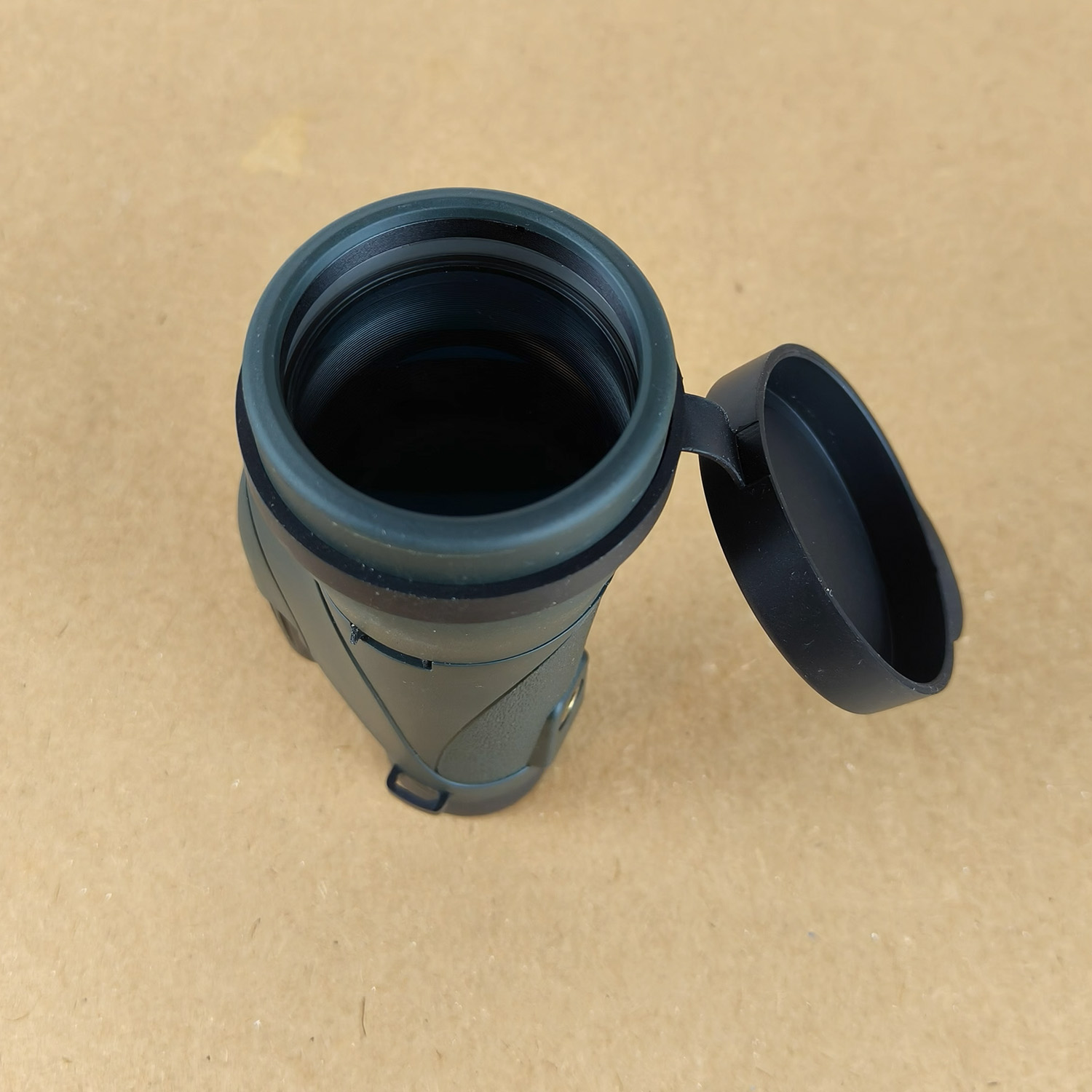 Note: One small plastic bracket hook used to secure the hand strap is broken, as shown in the photos. This does NOT affect optical performance or normal use of the monocular.
