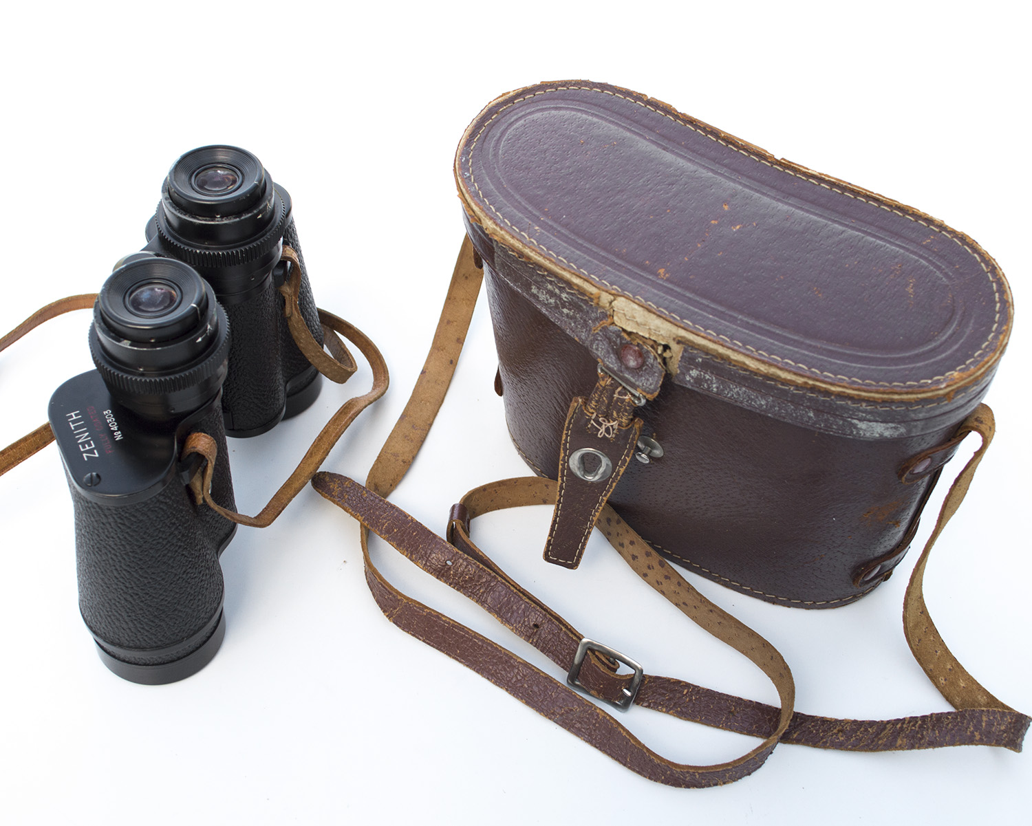 This is a pair of vintage Japanese ZENITH 7-12×40 zoom binoculars, with serial number 40303. The binoculars have 7x – 12x adjustable magnification and 40mm objective lens. Image focus is achieved by turning the centre focus wheel.