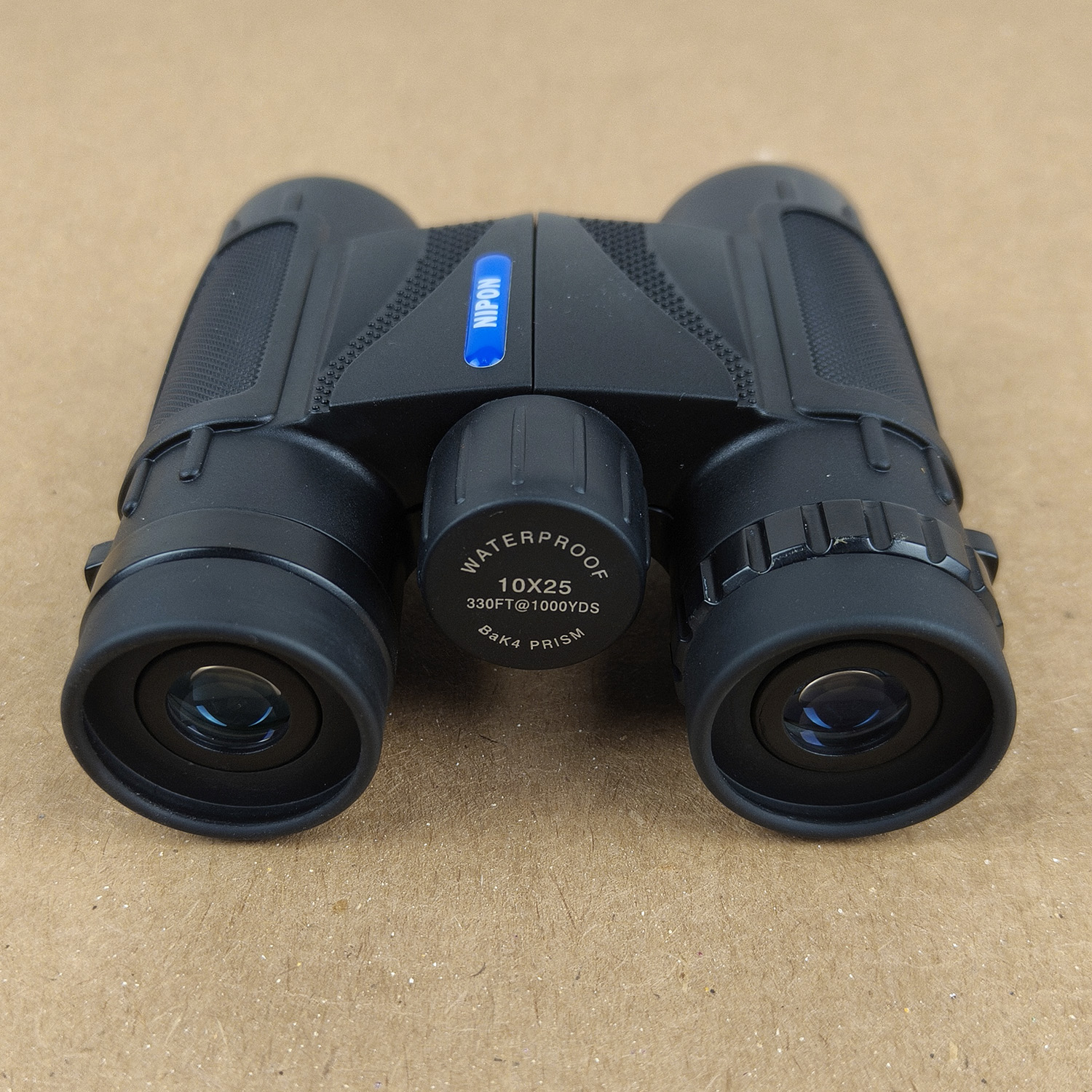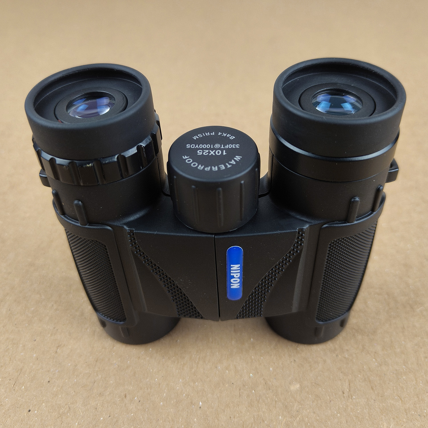This is a pair of brand new super compact NIPON 10×25 Waterproof and Fogproof binoculars with 10x magnification and 25mm objective lens. Compact design, convenient to carry around and easy to use.