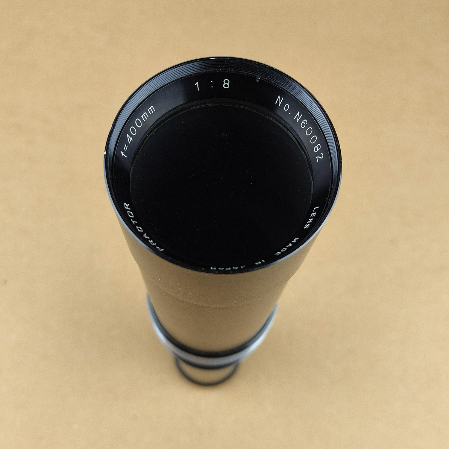 Offered here is a vintage Pradtor 400mm f/8 telephoto camera lens, manufactured in Japan and dating from approximately the 1960s–1970s golden era of Japanese optics.
