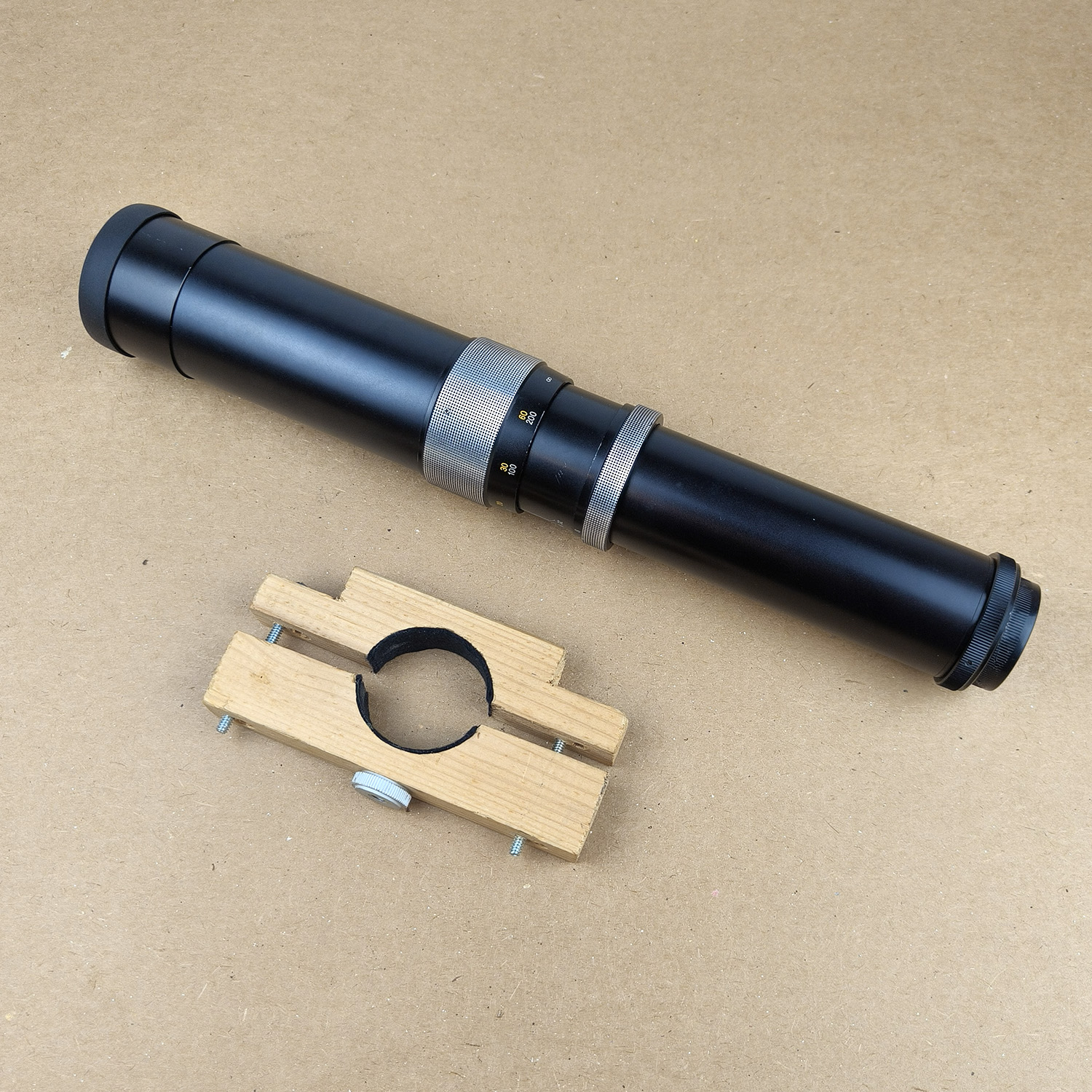 • Includes lens caps for both ends and a simple wooden clamp for tripod mounting