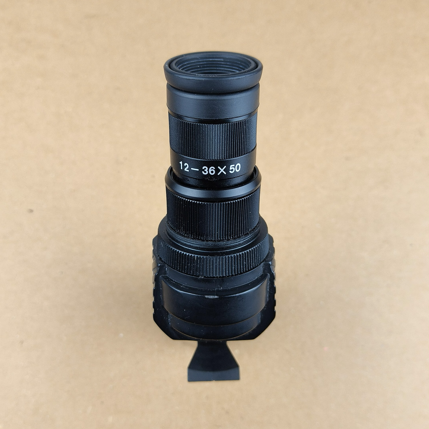 A well-made Tasco spotting scope featuring a versatile 12–36x zoom range and 50mm objective lens, ideal for birdwatching, nature observation, target shooting, and general outdoor viewing.