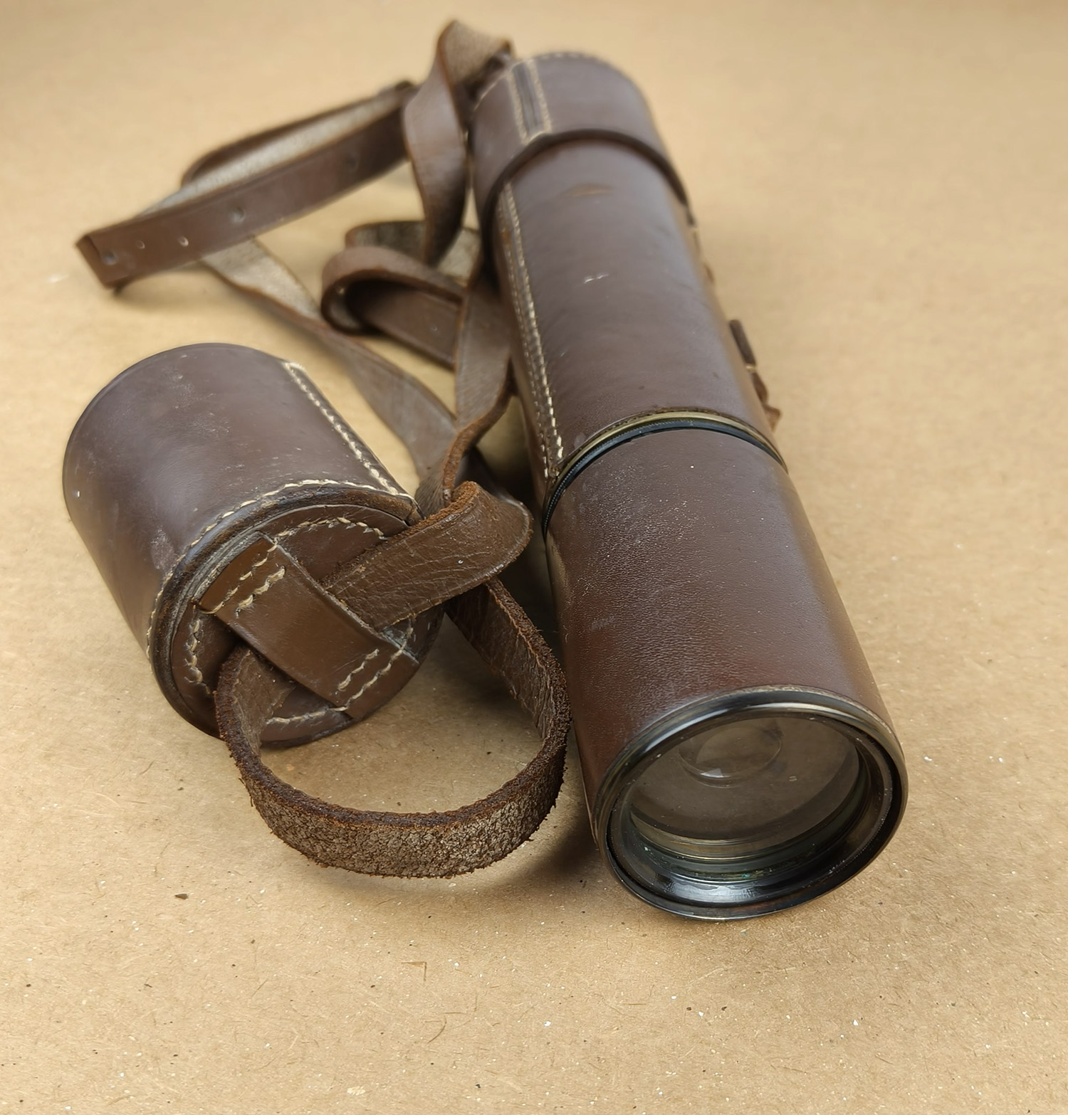 This is a genuine period optical instrument, supplied with its original fitted leather carry case and strap.