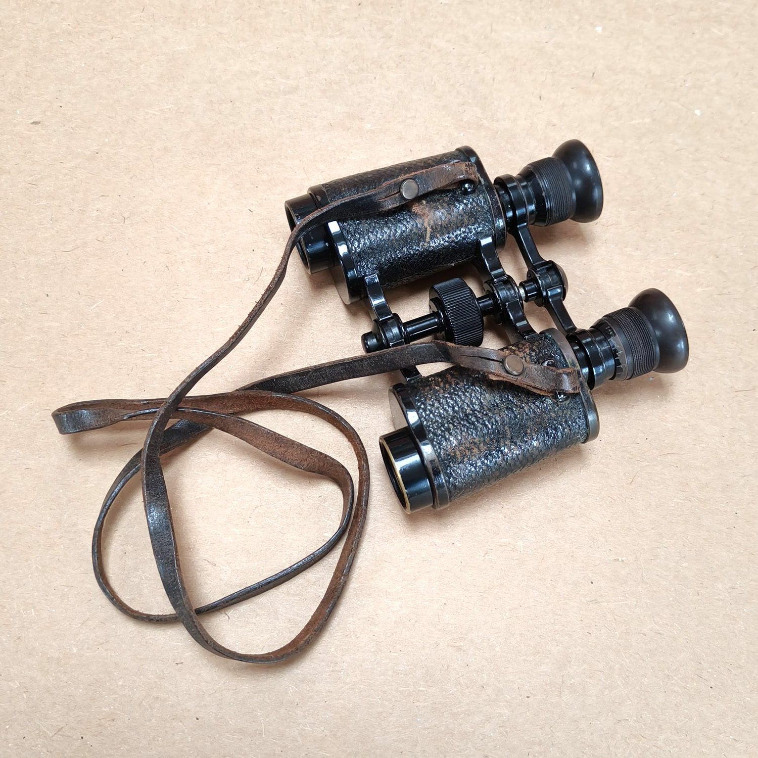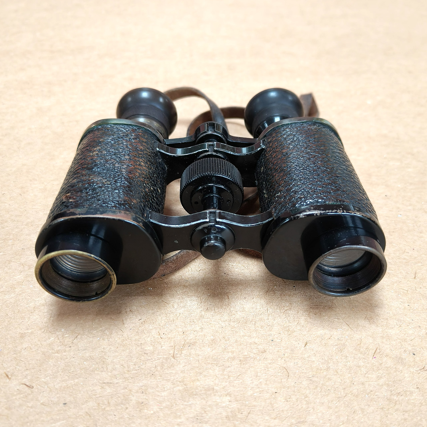 • Smooth focusing motion; optics clear for age, showing minor dust typical of vintage binoculars
