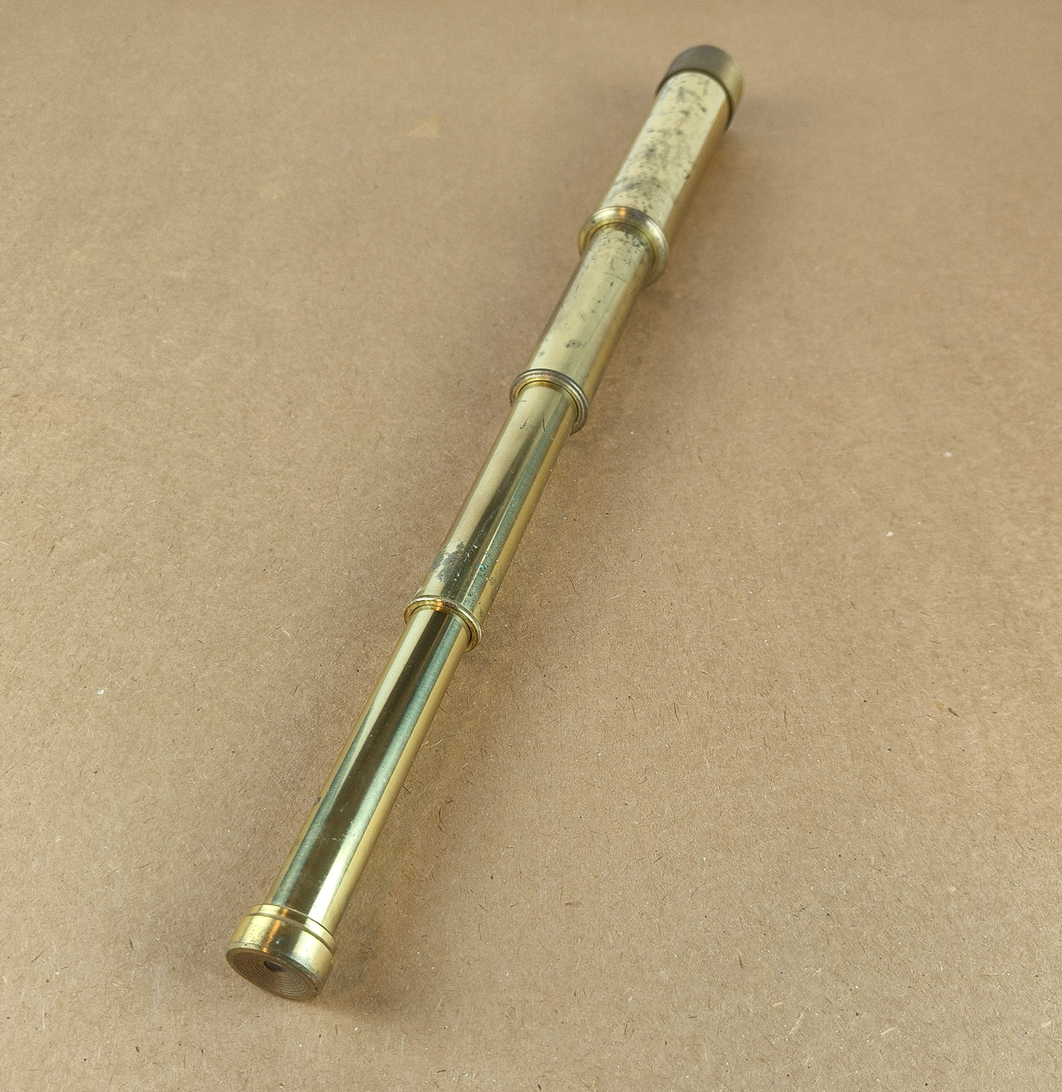 The telescope extends and retracts smoothly and has attractive natural patina and surface wear consistent with age and use, giving it strong vintage character.
