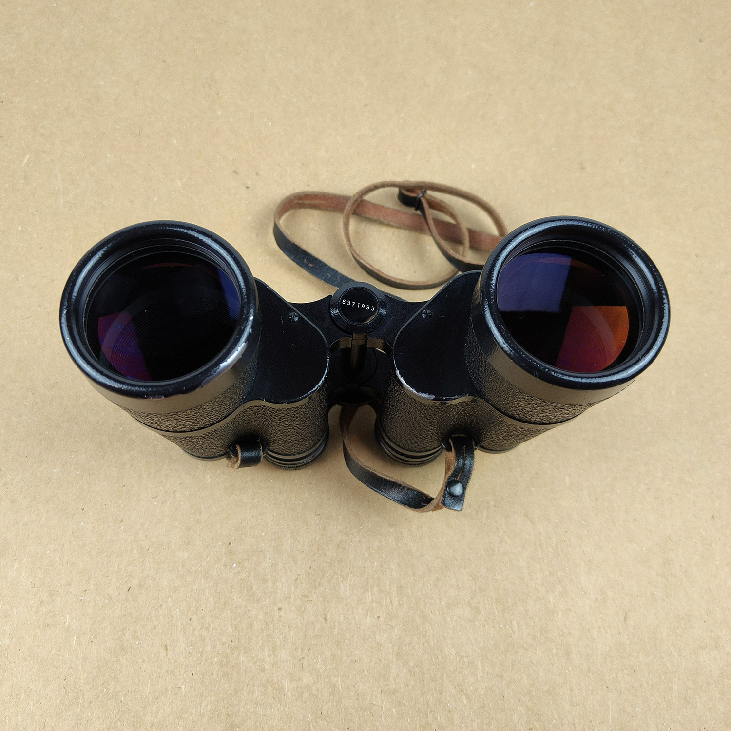 Up for sale is a vintage pair of Carl Zeiss Jena “Jenoptem” 10x50W binoculars, serial number 6371935, complete with hard leather case. These are classic German-made binoculars known for their excellent optical design and robust construction. Very good working condition.