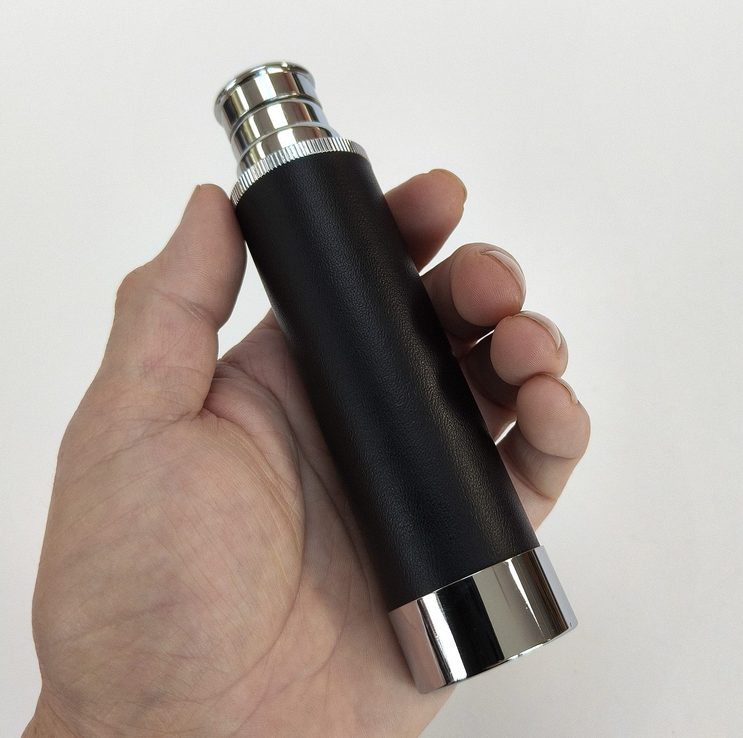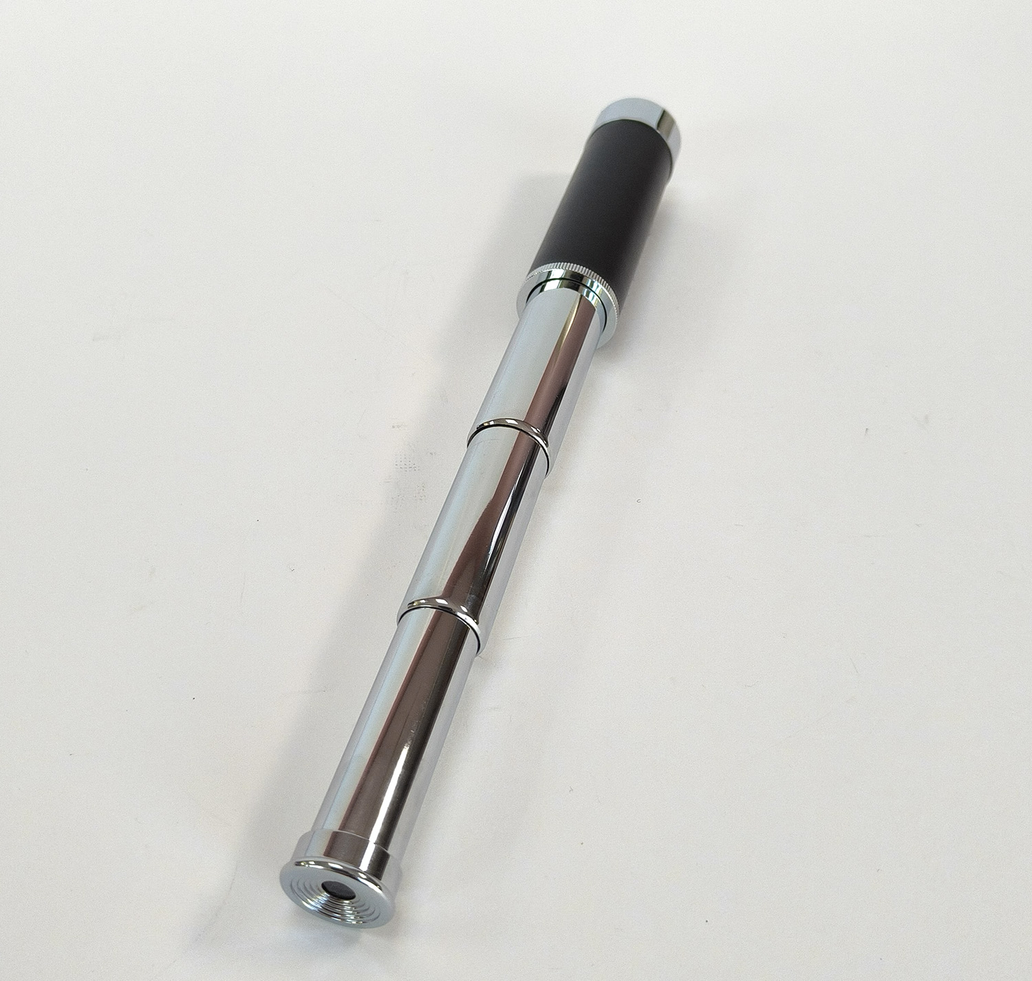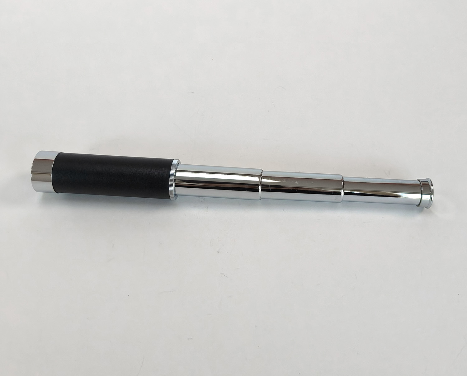 This listing is for a vintage chrome extendable 3-draw pocket telescope, complete with its original black carry case. This compact spyglass features a leather-style grip, three pull-out chrome sections, and a threaded objective end. It is lightweight, easy to carry, and ideal for quick viewing or as a decorative collector’s piece.
