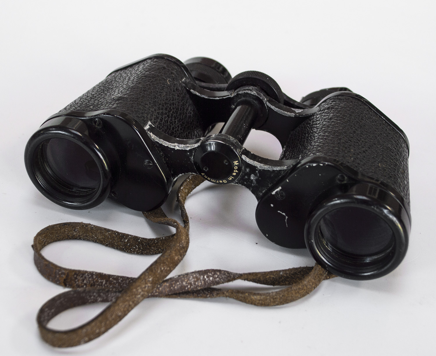 A pair of vintage German WWII Rodenstock Munchen Octonar 8×30 military binoculars in good working condition. Serial number: 501852