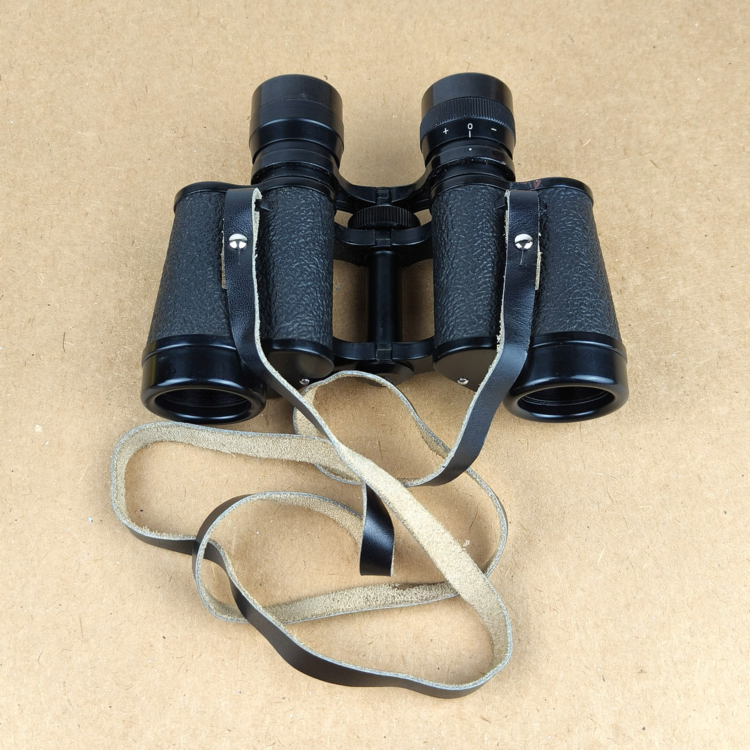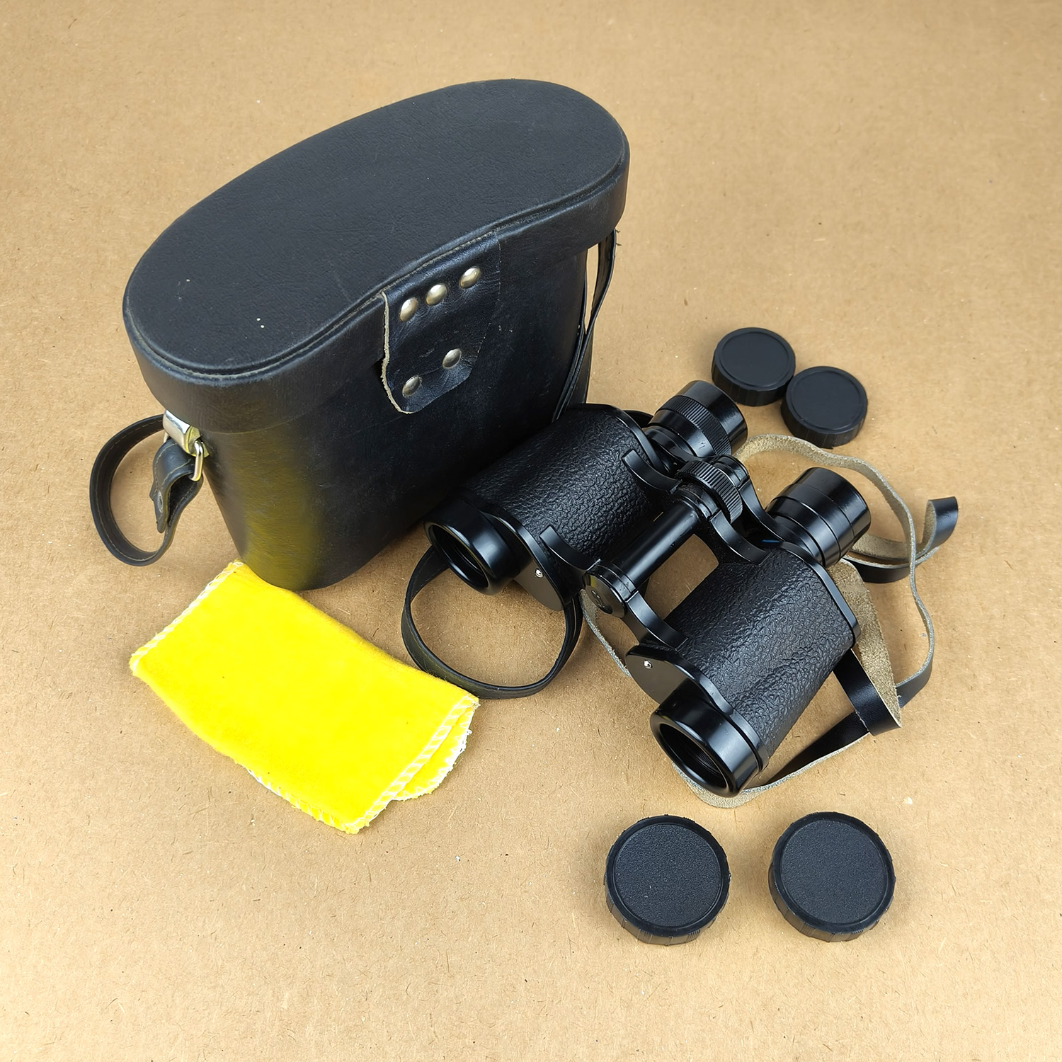 - Includes: binoculars, original case, leather neck strap, cleaning cloth, objective caps, eyepiece caps.