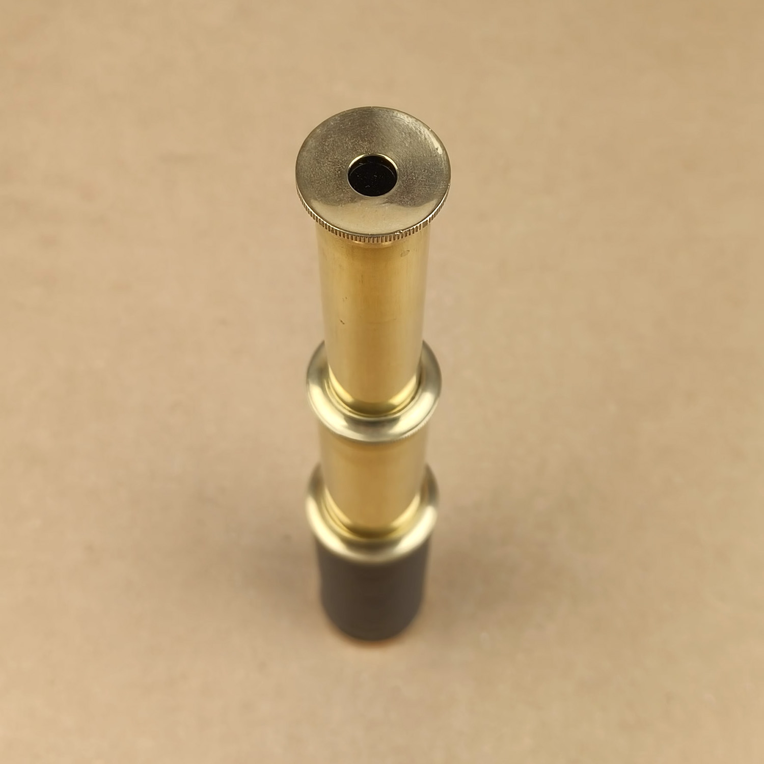 - Construction: Polished brass draw tubes with black main barrel