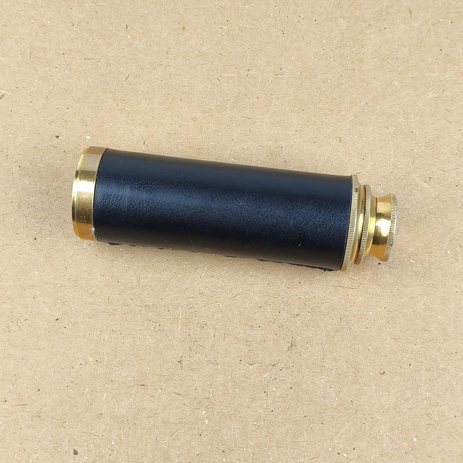 This is a classic 2-draw brass spyglass telescope with a black main barrel and polished brass draw tubes, presented in a compact and elegant traditional style. A great decorative piece that is also functional, suitable for collectors, display, or light viewing.