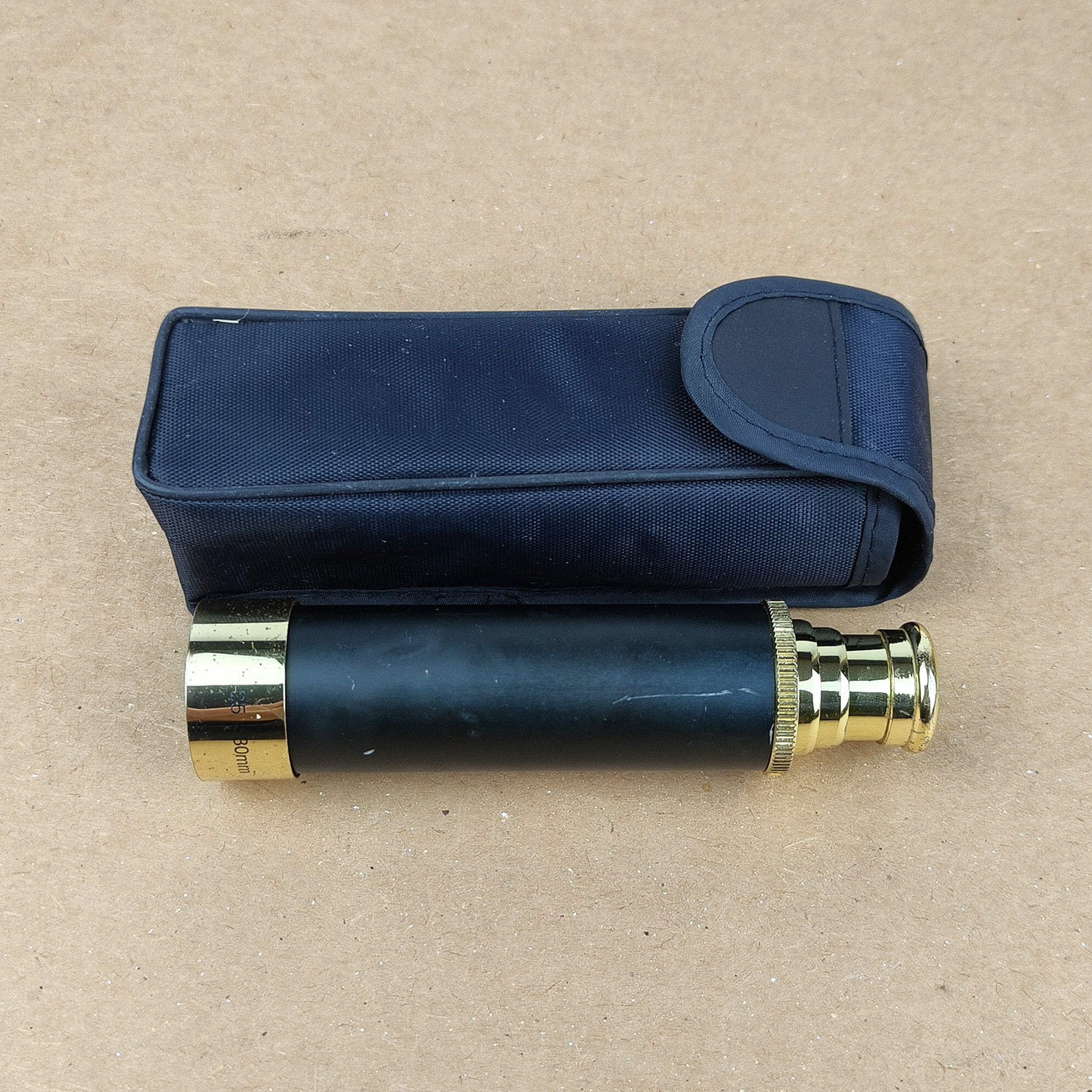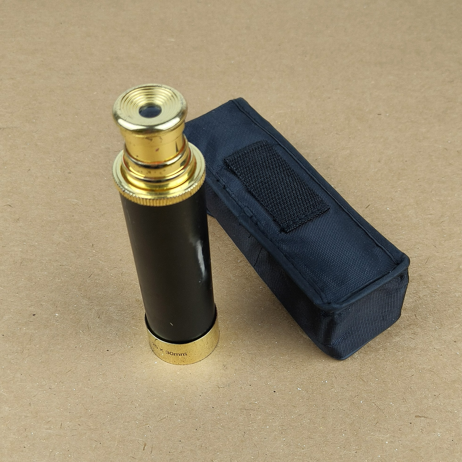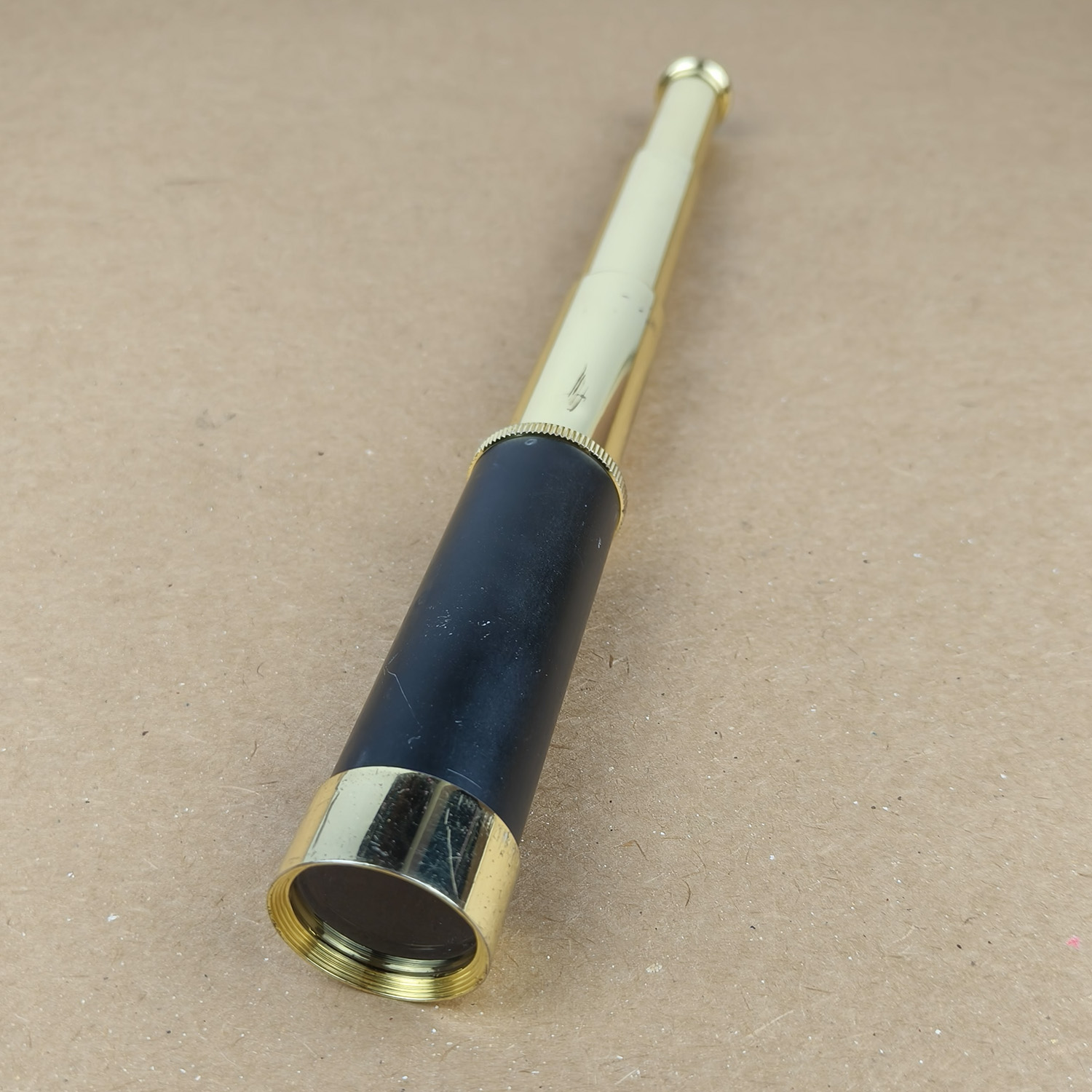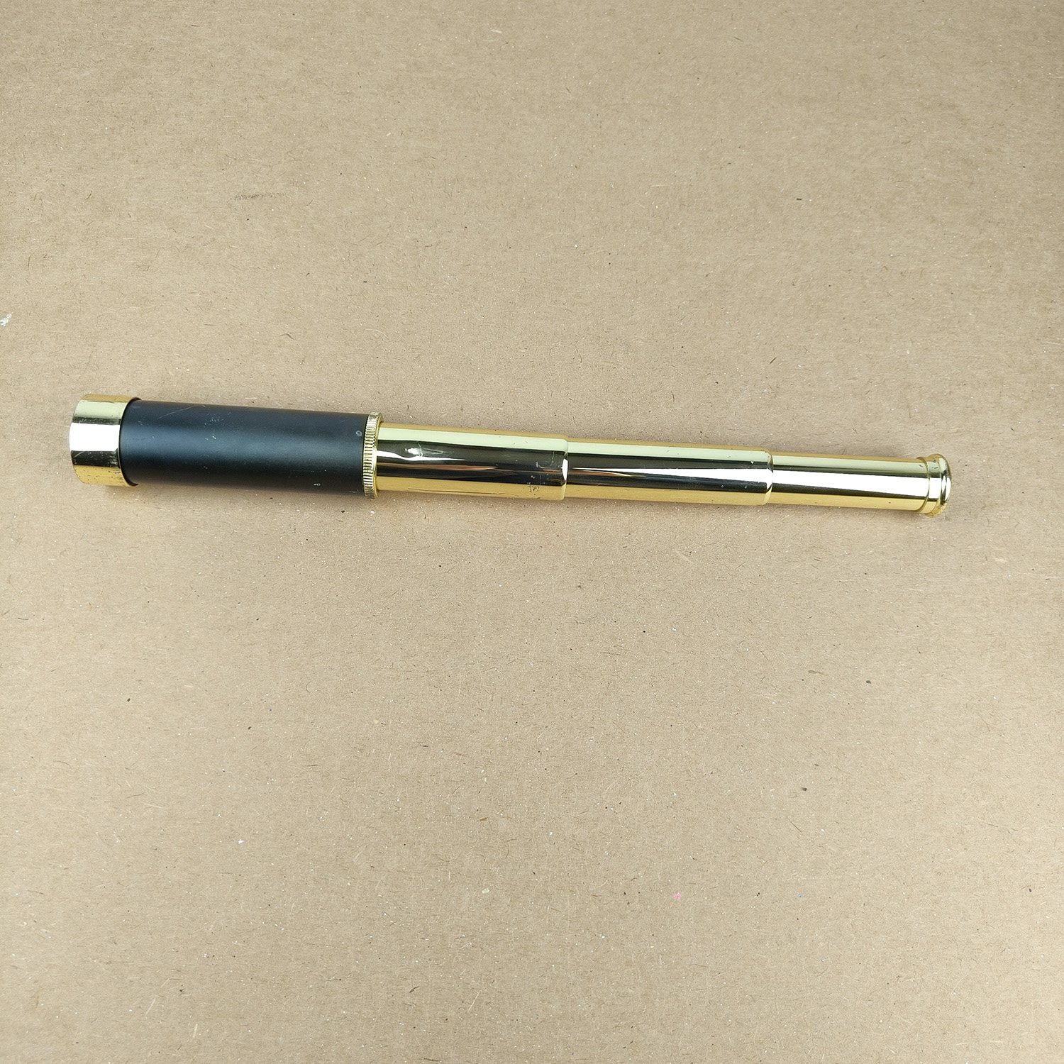 This is a classic 3-draw brass spyglass telescope with a black main barrel and polished brass draw tubes, presented in a compact and elegant traditional style. A great decorative piece that is also functional, suitable for collectors, display, or light viewing.