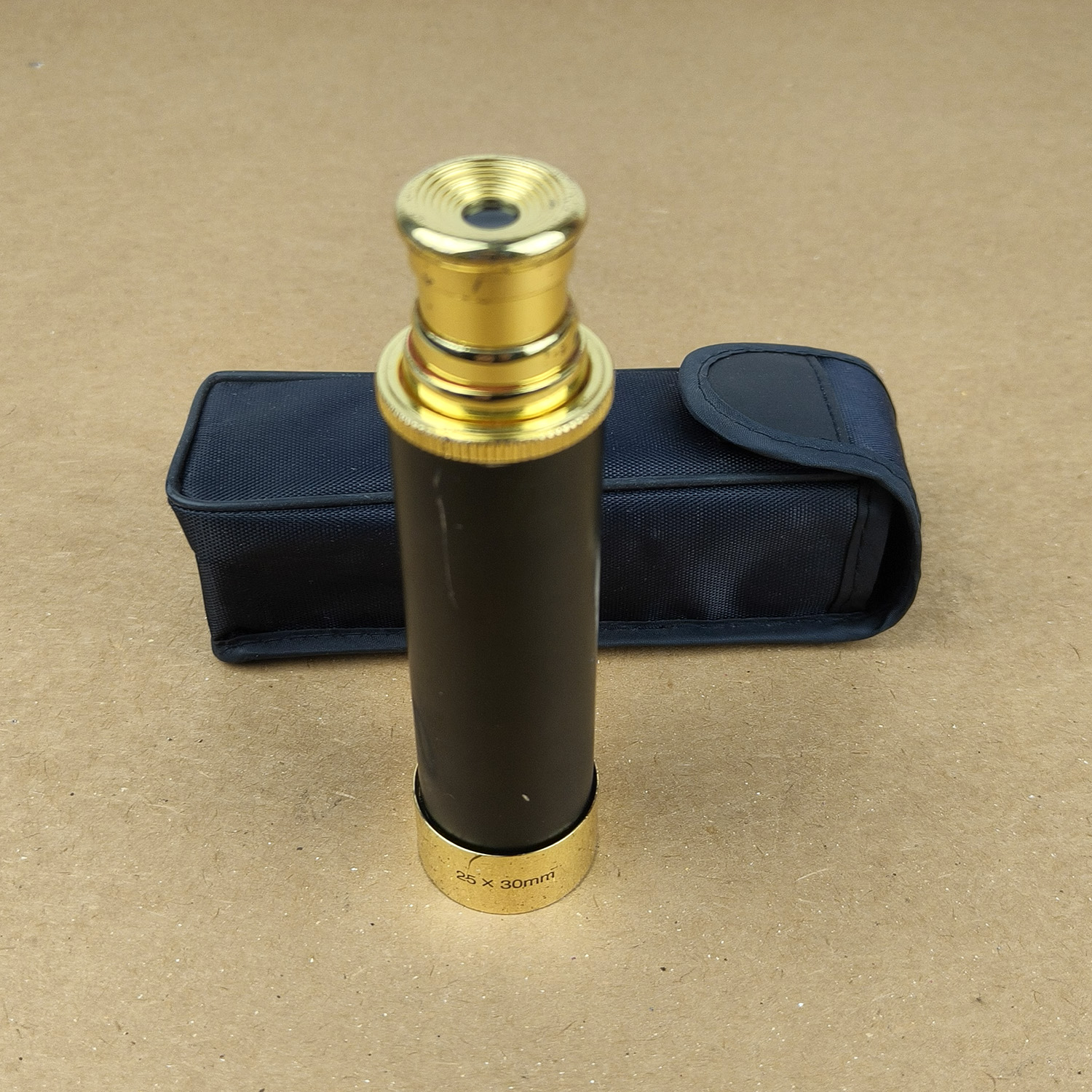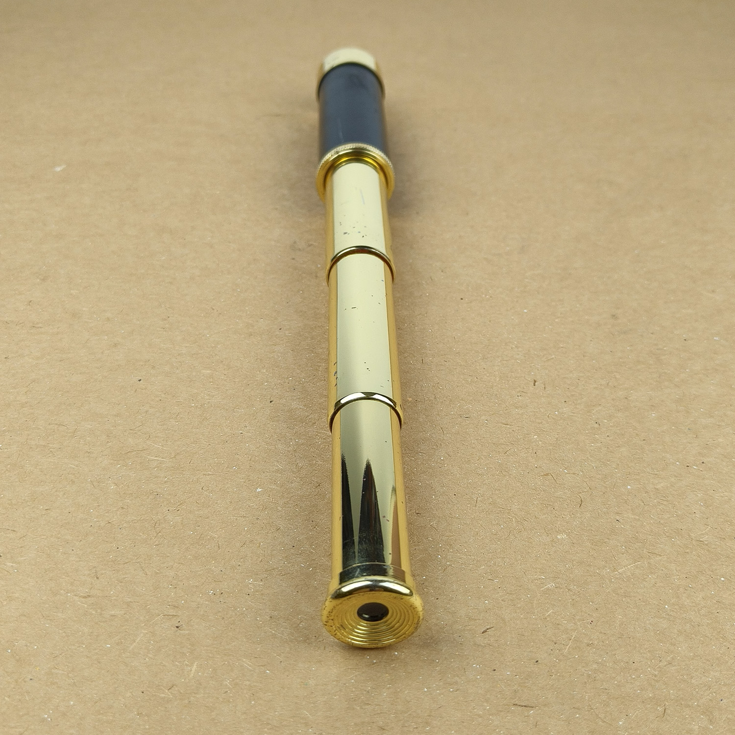- Construction: Polished brass draw tubes with black main barrel