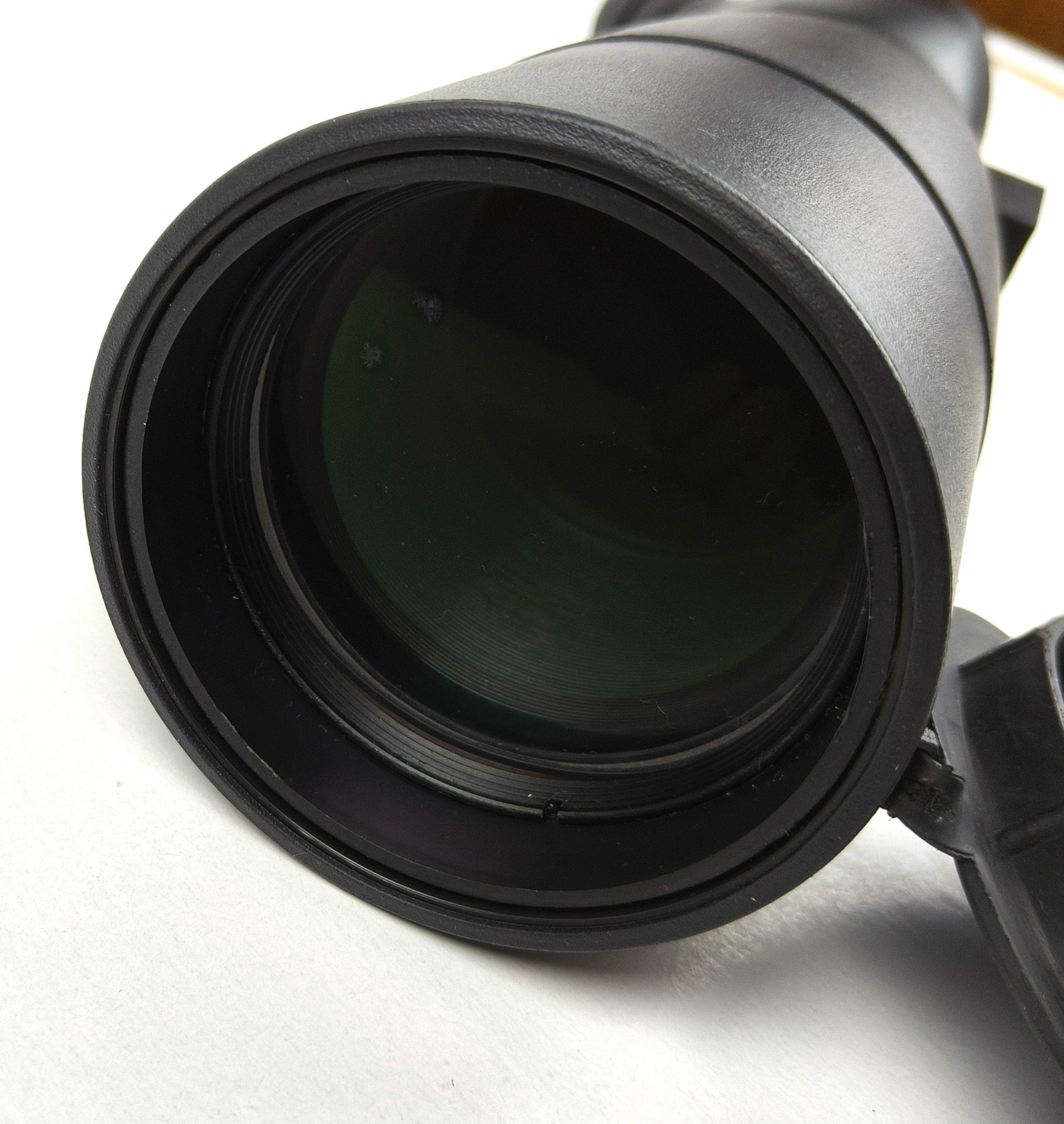 Note: For this scope only – The objective lens shows two small, faint translucent marks that are only visible when inspecting the scope from the front (looking into the objective lens under strong light), as shown in the last picture. They are not visible at all when viewing through the scope in normal use and have no effect on image clarity, brightness, or performance. Nevertheless, for this reason and for shop clearance, this scope is offered for sale with reduced price (approx. 30% off).