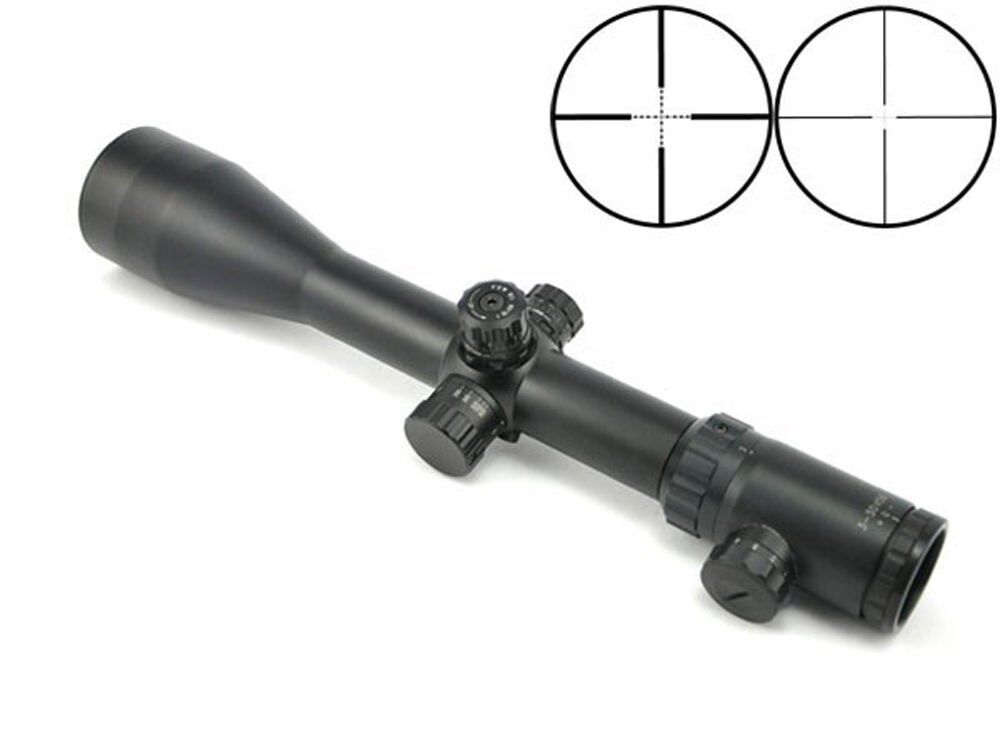 This is a Visionking 3-30×56 rifle scope with 3x to 30x zoom magnification and large 56mm objective lens for good light transmission and for long distance shooting even under low lighting level. The scope is nitrogen filled for waterproof and fog proof feature. This scope has high shock resistance and can be used for military, tactical or hunting purposes.