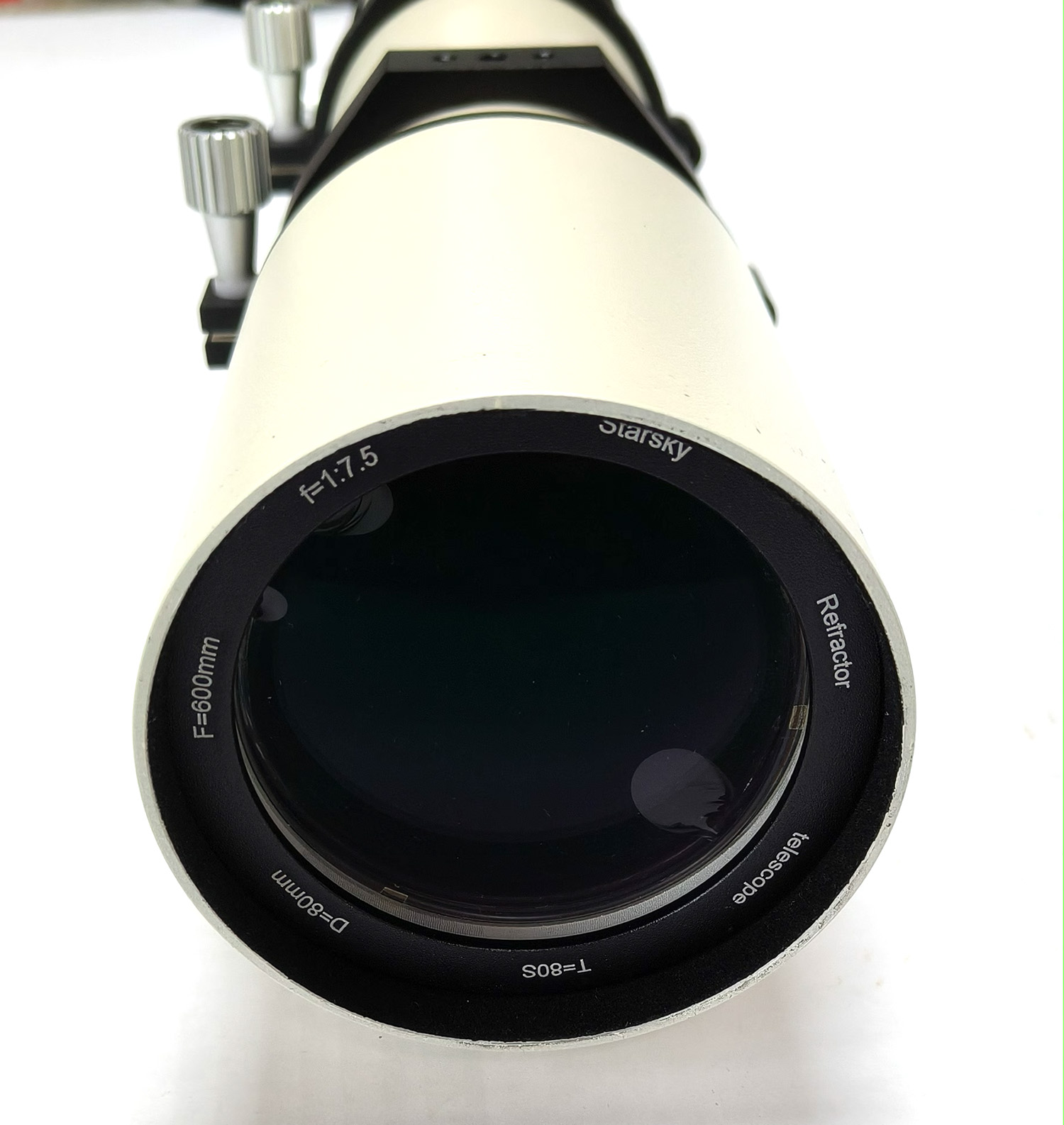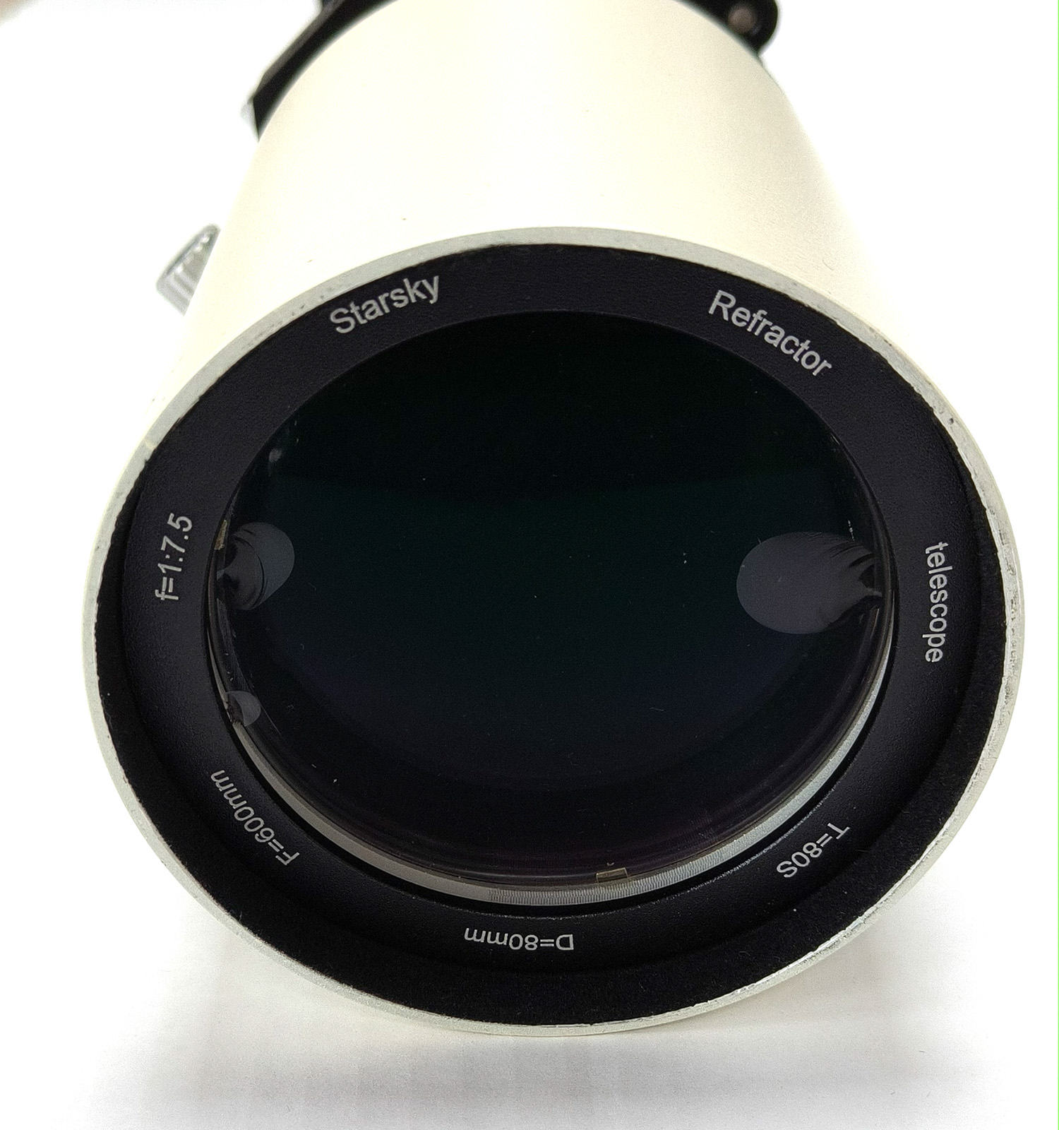 There are small edge chips on the lens, as shown in the photos. These marks are limited to the outer edge and are not visible during normal viewing through the eyepieces. They do not appear to affect the optical performance or usability of the telescope.
