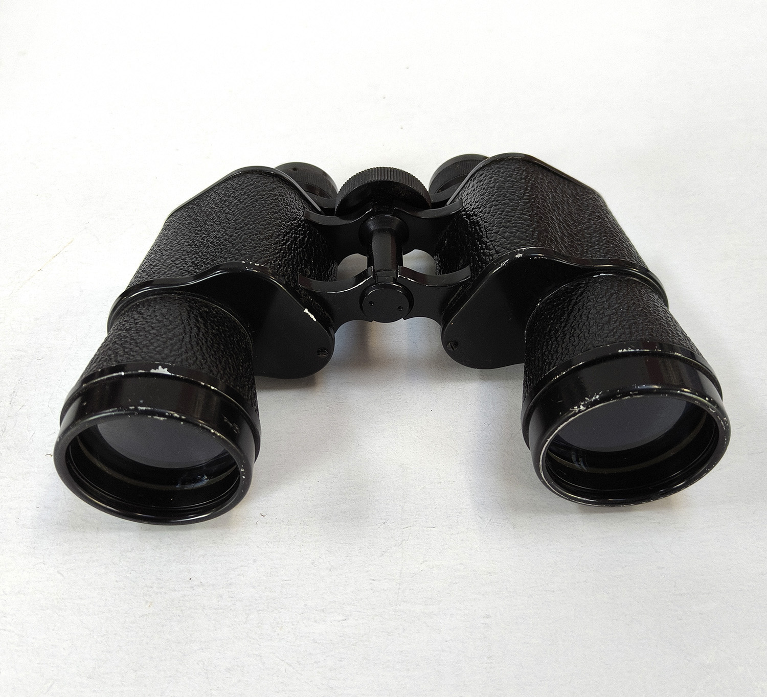 The binoculars are in good working condition with correct collimation, clean lenses and nice clear images for their age. The binoculars show light cosmetic wear to the paint finish, as shown in the photos. Leather case shows some age-related wear but remains sturdy and complete.
