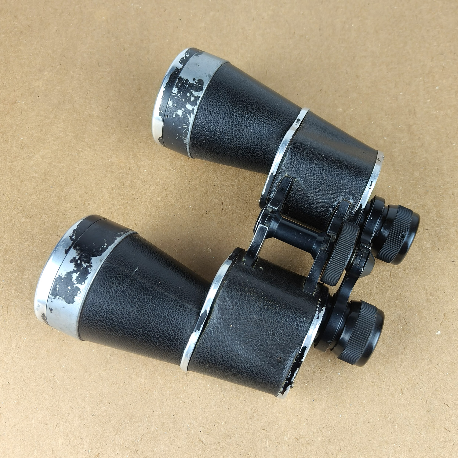 The binoculars are pre-owned and remain in good overall working condition. Optics appear clear with good brightness for their age, and the focusing mechanism operates smoothly. The exterior shows honest cosmetic wear consistent with use, including paint wear around the objective rims and metal cover edges. These do not affect performance.